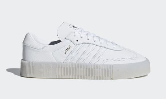 Dubbed the Samba Rose, this exclusive shoe retains many of the cult-favorite Samba details, however the usual material upper has been swapped out for a sleek, soft white leather. Decorative zig-zag stitching features across the clean upper, which also boasts contrasting black details on the heel panel and Three Stripe branding on the lateral side. Bringing a pop of color to the overall monochromatic shoe is adidas’ Trefoil logo that sits upon the tongue in blue. Rounding off the sneaker in an on-trend manner is a chunky platform sole in translucent gum that features textured details and adidas Originals’ logo, too