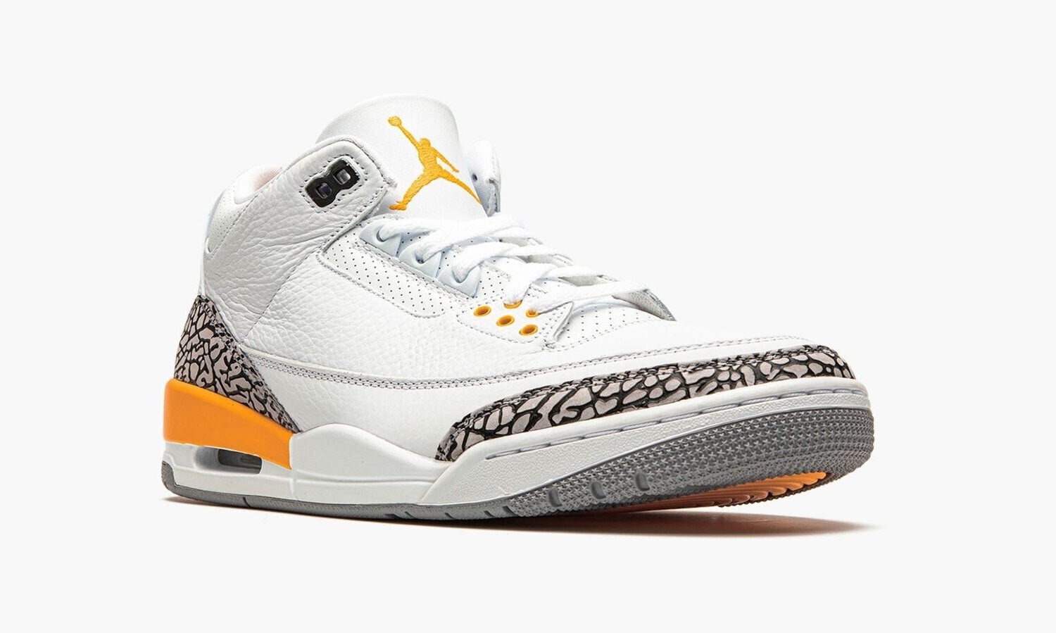 The Air Jordan 3 Laser Orange captures a similar look and feel to the classic White Cement colorway, instead featuring hits of Laser Orange on the midsole, lace holes, and Jumpman on the tongue. This Jordan 3 brings more flare to the already popular silhouette.