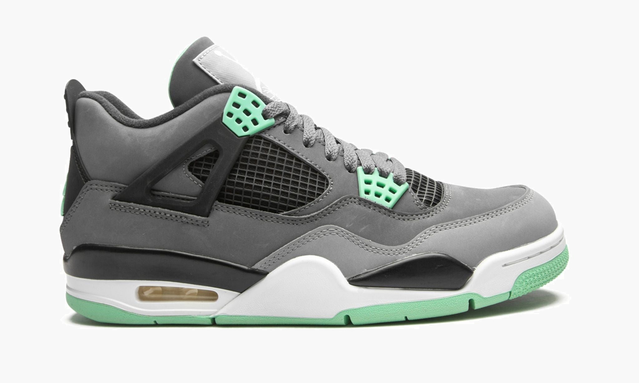 One of the more popular non-OG Air Jordan 4 colorways ever, in 2013 the iconic silhouette was given this “Green Glow” edition featuring a nubuck upper in two shades of grey with black and bright green accents.