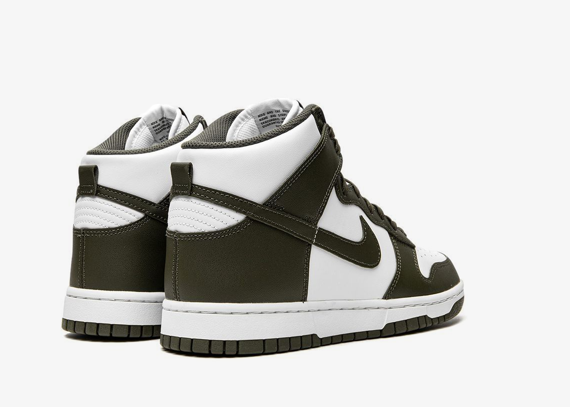 The Nike Dunk High “Cargo Khaki” was previously offered back in 2017 and the stylish rendition is slated to return once again for the fall of 2021. Simply flaunting the familiar two-tone finish of “White/Cargo Khaki,” the high-top model bears the pristine hue across its leather base while the highlight Cargo Khaki hue is prominent for its overlays, Swooshes, tongue branding, inner lining, and rubber outsole. Finally, a white midsole sandwiched in between rounds out the overall profile.